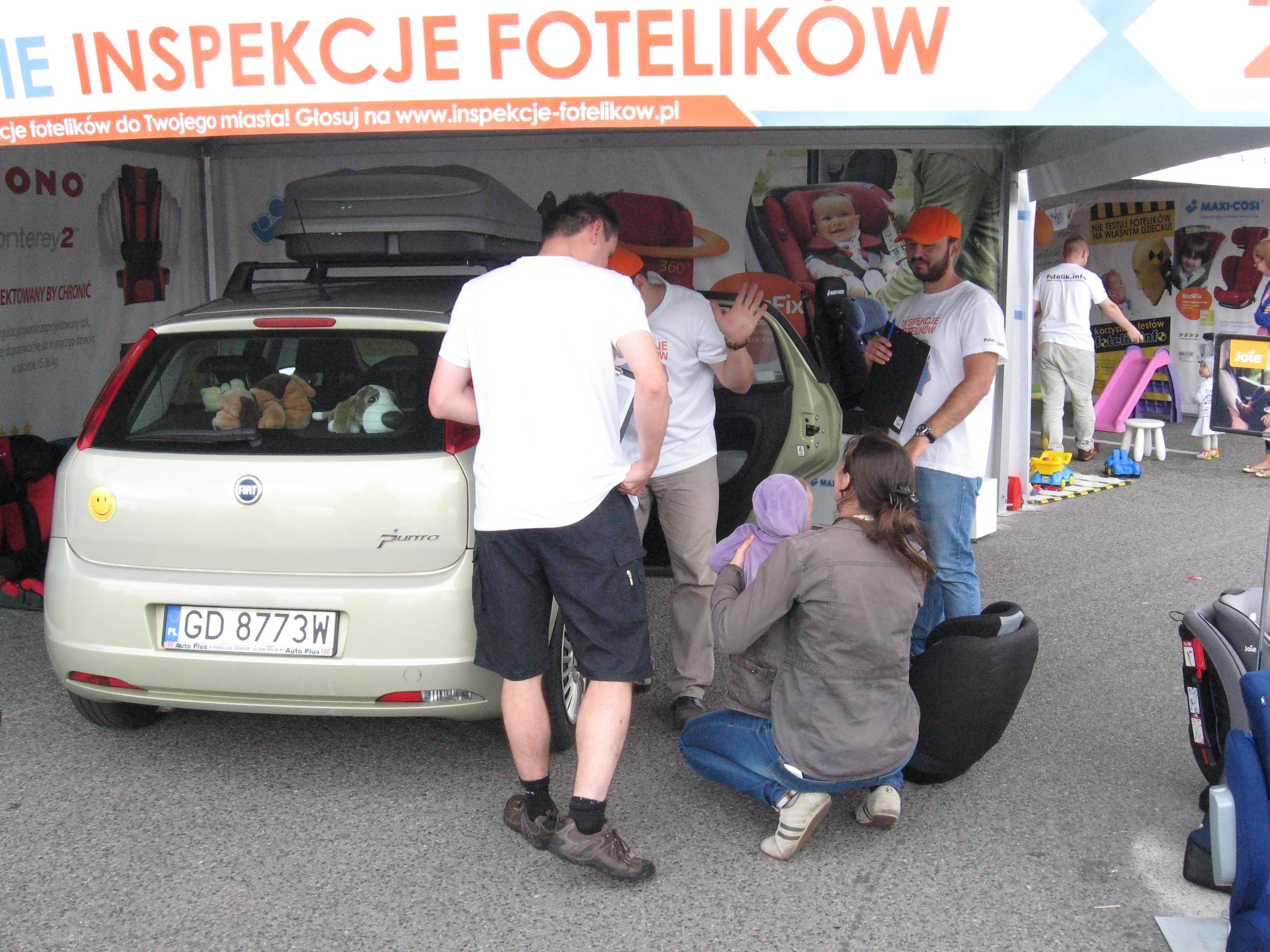 Kolejki samochodów, wielu zatroskanych rodziców i radosne gromadki dzieci, a przy tym wszystkim Jej Wysokość Żyrafa i porywisty wiatr. Oto obraz kolejnego dnia na trasie kampanii Ogólnopolskie Inspekcje Fotelików. Gdańszczanie wyrażali wielkie chęci, aby nauczyć się nowych trików, które pozwolą zwiększyć bezpieczeństwo ich dzieci. Jednak nie każdy z odwiedzających miał świadomość, że my jesteśmy po to, by nauczyć używać ich własnego fotelika. Drodzy Rodzice, nasi eksperci nie są od tego, by zamontować fotelik za Was i żeby mógł on tam pozostać aż dziecko nie wyrośnie. Nasi eksperci są po to, aby Was samych tego nauczyć! Pamiętajcie o tym przyjeżdżając do naszego miasteczka.
