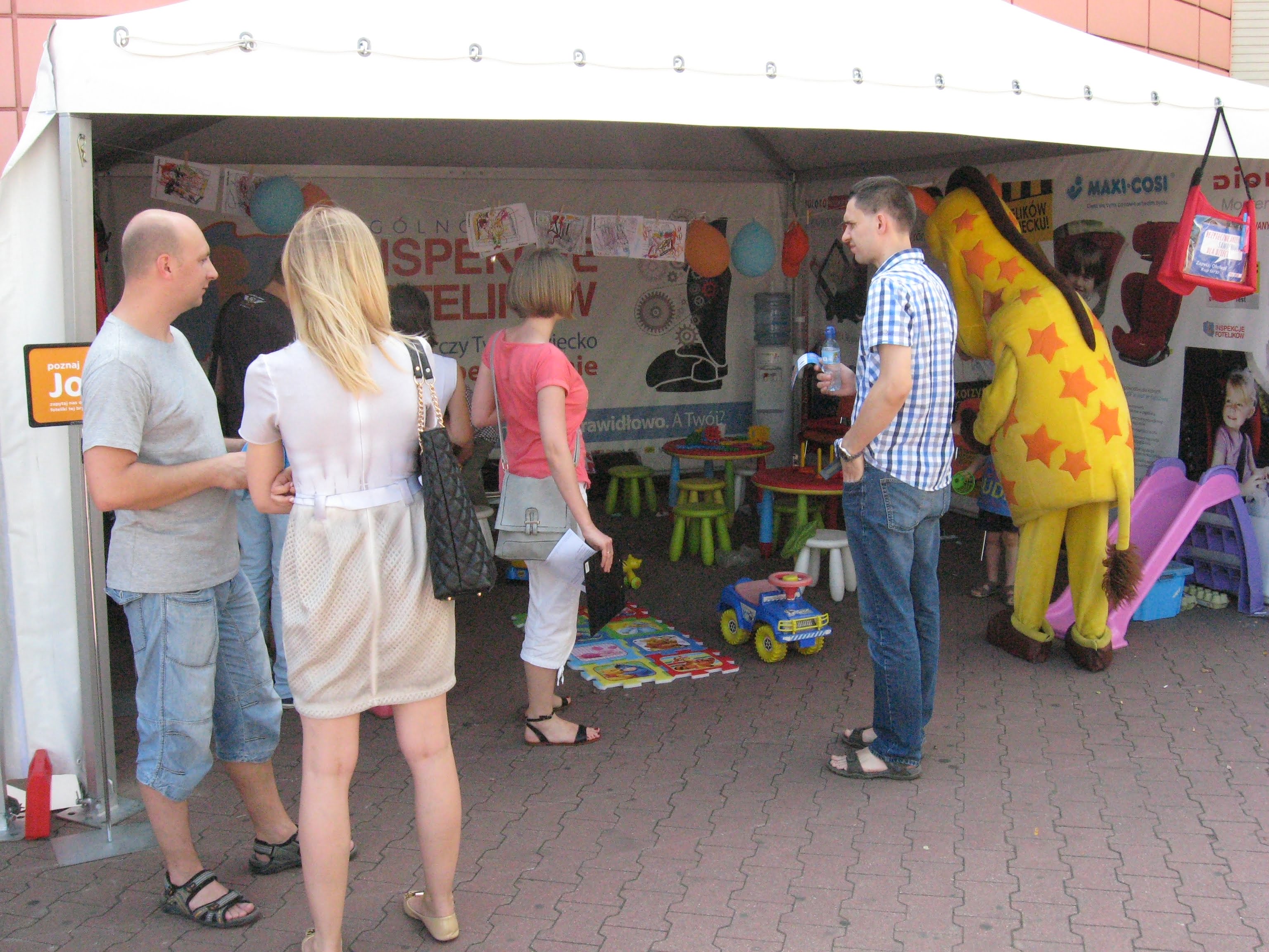 W niedzielę we Wrocławiu naszym najmłodszym gościem był dziewięciodniowy maluszek o rekordowej na inspekcjach wadze (2,4 kg). Co prawda jeszcze nie chciał zawitać do namiotu zabaw ani przytulać się do żyrafy, ale z inspekcji chyba był zadowolony. A rodzice w tym tygodniu jadą kupić inny fotelik dla swojego szkraba.